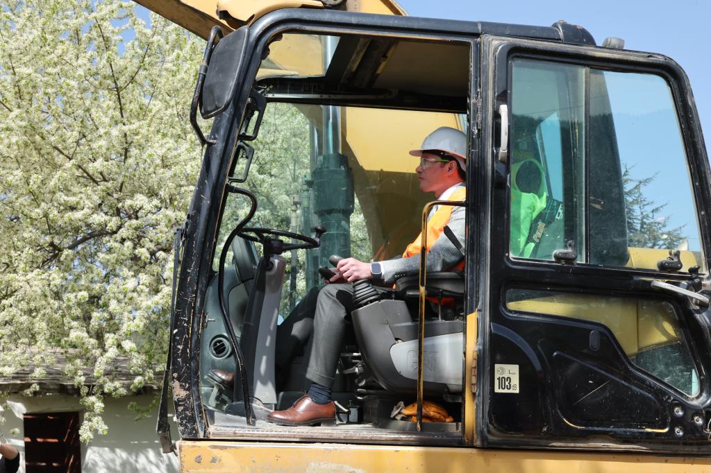 çalışmalarının başlangıcında iş makinesinin başına geçerek ilk kepçe darbesini